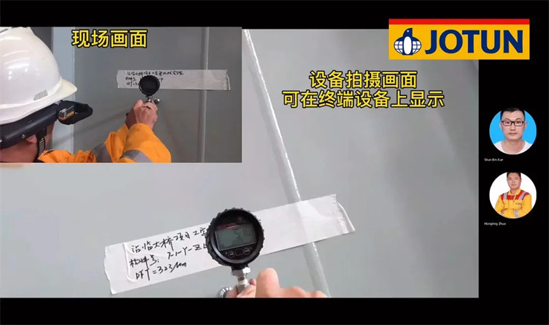 在這個“防疫常態(tài)化”的時代,出差已經(jīng)不再像以前說走就能走了,施工現(xiàn)場的緊急情況無法及時處理,輕則影響工期,重則影響工程質(zhì)量,后續(xù)隱患無窮。佐敦為此引進(jìn)新科技——頭戴式AI計算機(jī),現(xiàn)場人員走到哪里,后端人員就能看到哪里,涂層檢查、遠(yuǎn)程指導(dǎo)、現(xiàn)場勘驗(yàn)、附著力測試、線上培訓(xùn)等都能即時實(shí)現(xiàn),有效提高了服務(wù)的時效性,更是降低了客戶與佐敦的工作成本。