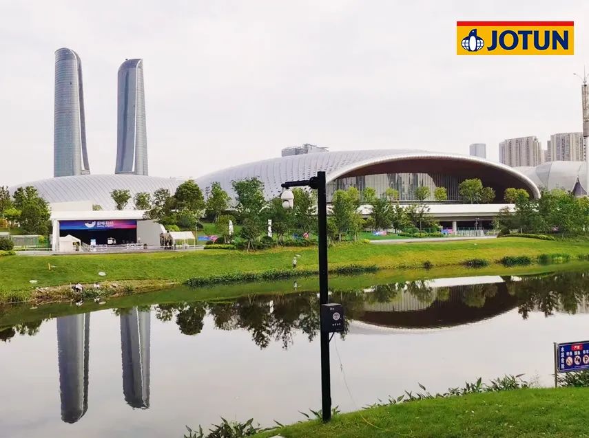 打破人們對于現(xiàn)代建筑冷冰冰的傳統(tǒng)理念,用獨(dú)特的月牙懸挑結(jié)構(gòu)創(chuàng)造張力之美,以萬鈞鋼之重造就灞河之濱輕盈的月光之美。佐敦以豐富的鋼結(jié)構(gòu)防腐涂刷業(yè)績和專業(yè)的防腐防火長效保護(hù)提案,被選定為9萬噸鋼結(jié)構(gòu)的防腐防火涂料供應(yīng)商,特選用佐敦膨脹型防火涂料與氟碳面漆組合,為2萬多噸的外露屋蓋鋼桁架保駕護(hù)航,實(shí)現(xiàn)“懸浮彎月”的建筑設(shè)計效果。